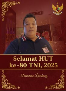 Saya, Davidson Lambung, yang akrab disapa Icong, pengusaha lokal asli Dayak Kalimantan Tengah, mengucapkan Selamat Ulang Tahun ke-80 Tentara Nasional Indonesia (TNI).