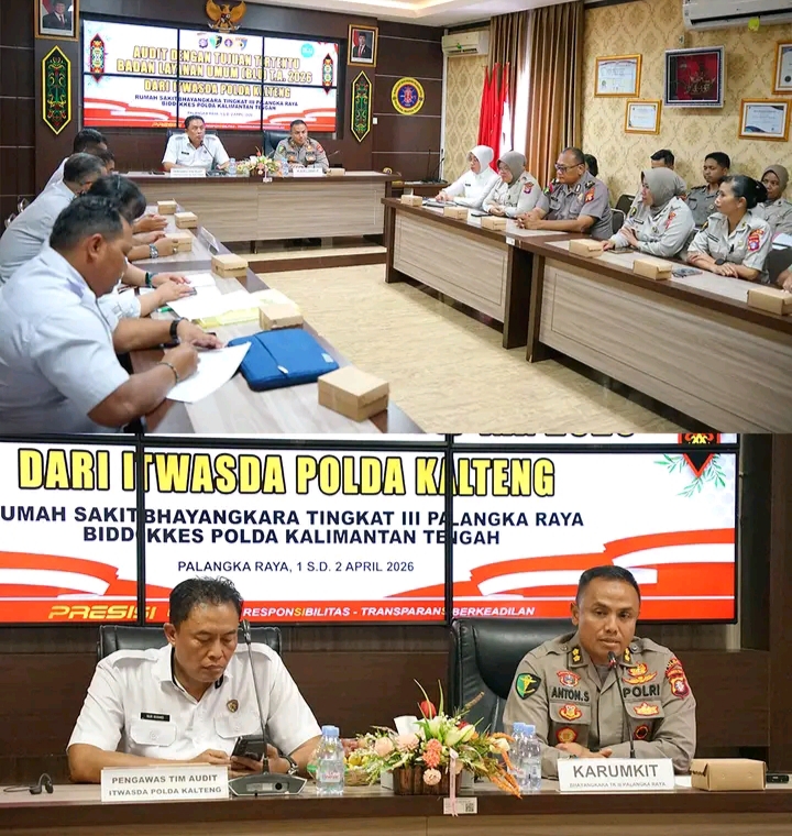 LINTAS KALIMANTAN | PALANGKA RAYA – Rumah Sakit (Rumkit) Bhayangkara Tingkat III Palangka Raya Polda Kalimantan Tengah menjalani audit Badan Layanan Umum (BLU) Tahun Anggaran 2025–2026 yang dilaksanakan oleh Inspektorat Pengawasan Daerah (Itwasda) Polda Kalteng, Kamis (2/4/2026).