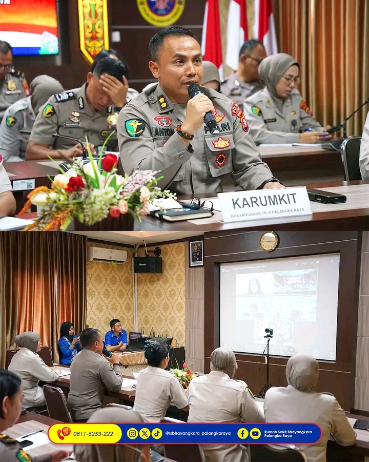 LINTAS KALIMANTAN | Palangka Raya – Rumah Sakit Bhayangkara Tingkat III Palangka Raya menggelar rapat bersama Dewan Pengawas (Dewas) secara virtual guna mengevaluasi kinerja sekaligus membahas program kerja rumah sakit ke depan. Kegiatan tersebut berlangsung di Aula Gawi Hapakat Rumkit Bhayangkara Palangka Raya, Selasa (10/3/2026) pagi.