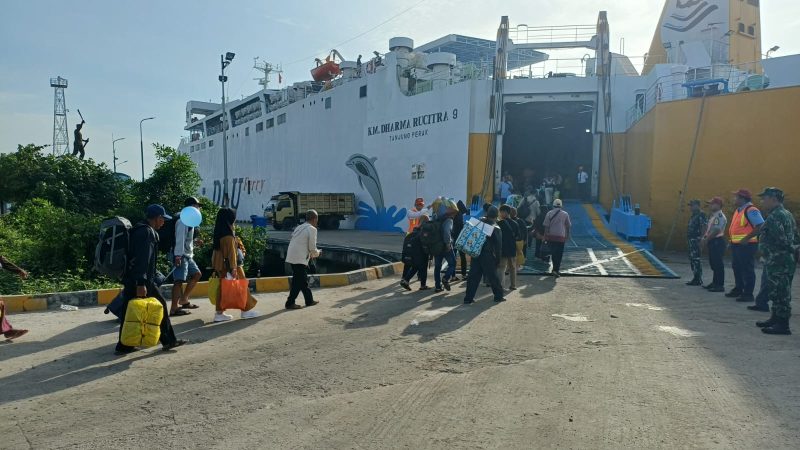 LINTAS KALIMANTAN | Arus mudik melalui jalur laut di Pelabuhan Kumai, Kabupaten Kotawaringin Barat, mulai menunjukkan peningkatan menjelang Hari Raya Idulfitri. Hingga H-13 Lebaran, ribuan pemudik telah diberangkatkan menggunakan armada kapal milik PT Dharma Lautan Utama Cabang Kumai menuju sejumlah kota tujuan di Pulau Jawa.