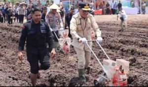 Dari lokasi penanaman di Jalan Tumbang Talaken Km 62, Kelurahan Pager, Kecamatan Rakumpit, Kota Palangka Raya, Gubernur Agustiar bersama jajaran Forkopimda dan kelompok tani setempat turut menanam benih jagung sebagai simbol semangat membangun kedaulatan pangan dari daerah.