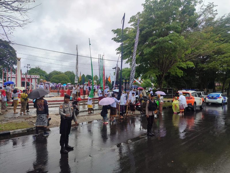 Kegiatan tersebut berlangsung dengan titik awal di Pura Pitamaha, Jalan Kinibalu dan dilanjutkan menuju Dermaga Tugu Soekarno di Jalan S. Parman, Kota Palangka Raya.