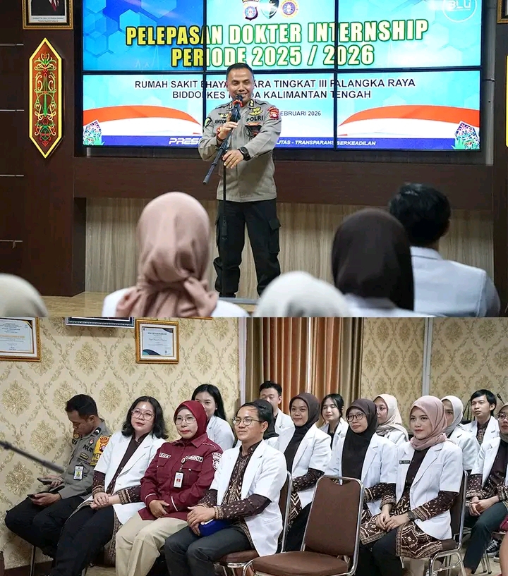 LINTAS KALIMANTAN || PALANGKA RAYA – Rumah Sakit (Rumkit) Bhayangkara Tingkat III Palangka Raya Polda Kalimantan Tengah menggelar acara pelepasan bagi 16 dokter muda yang telah menyelesaikan Program Internship Periode 2025-2026, Kamis (13/2). Kegiatan yang berlangsung di Aula Gawi Hapakat Rumkit Bhayangkara ini menjadi momentum berakhirnya masa tugas para dokter peserta internship.