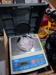 Dari hasil penggeledahan, polisi menemukan 10 paket plastik klip berisi kristal bening diduga sabu dengan berat total sekitar 4,14 gram (termasuk plastik pembungkus). Selain itu, turut diamankan 1 unit timbangan digital warna silver, 1 pack plastik klip merek ZIP IN, 1 kotak merek D-ZINER warna merah, 1 botol merek HAPPYDENT COOL WHITE warna pink, 1 pipet kaca, uang tunai Rp450.000, serta 1 unit handphone Samsung Galaxy A6+.